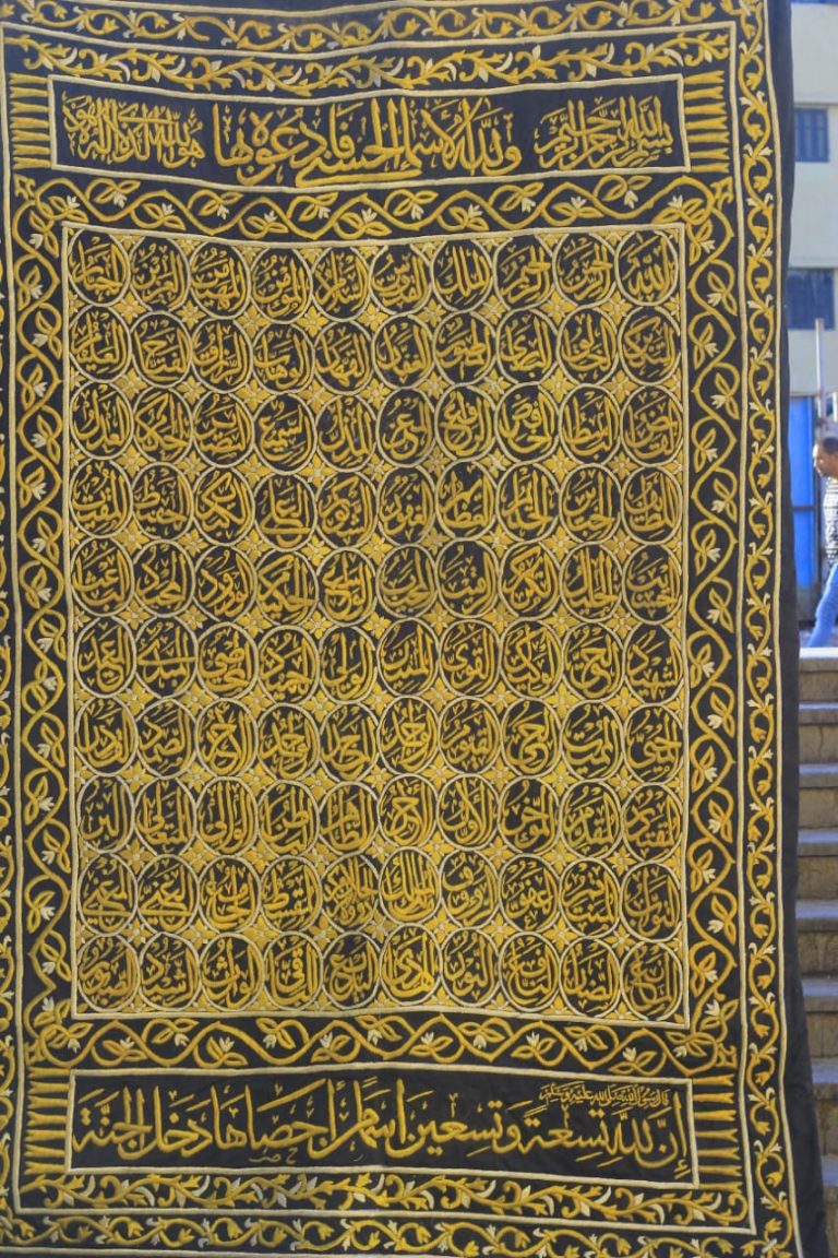 Every name reflects one of Allah’s divine attributes, serving as a profound reminder of His mercy, power, and majesty. The craftsmanship echoes the devotion of the artisans, making this Kiswa not only a visual masterpiece but also a deeply spiritual artefact