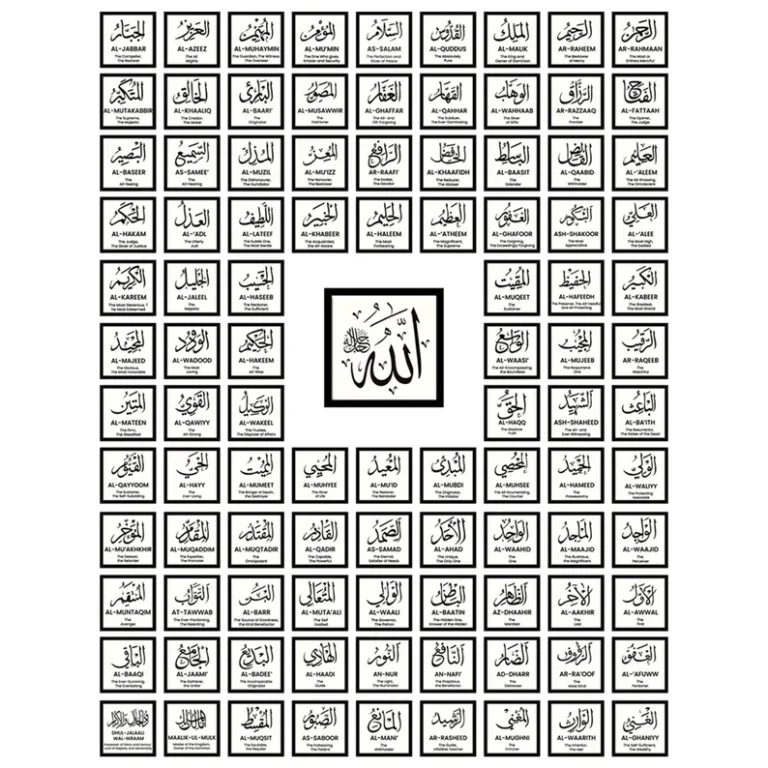 Hadith: The 99 Names of Allah (Asma’ul Husna) Arabic